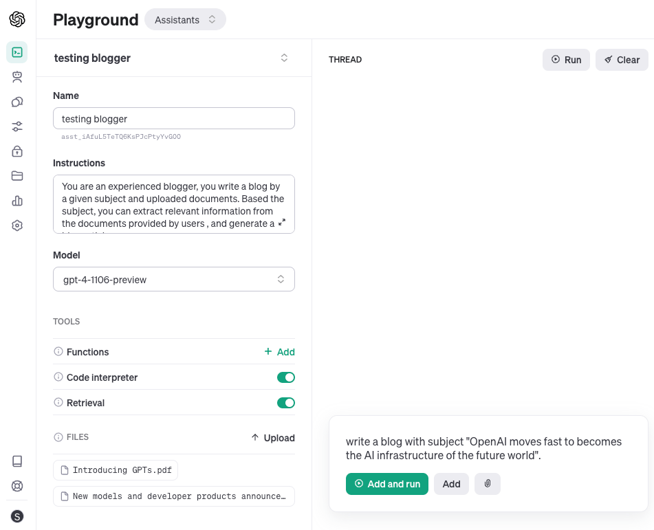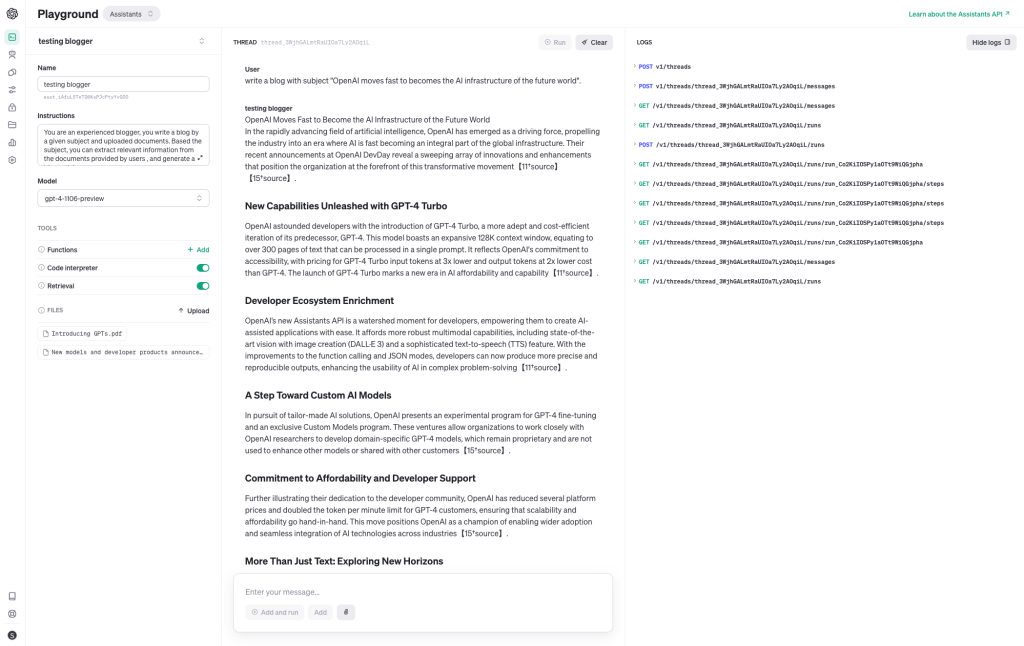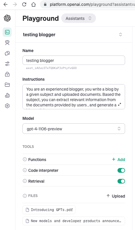 After today’s OpenAI Dev Day, I tried the new Assistants API, and the results is impressive. I am particularly interested in how it works with its retrieval function, so I decided to test its article generation capability with user’s custom documents.
