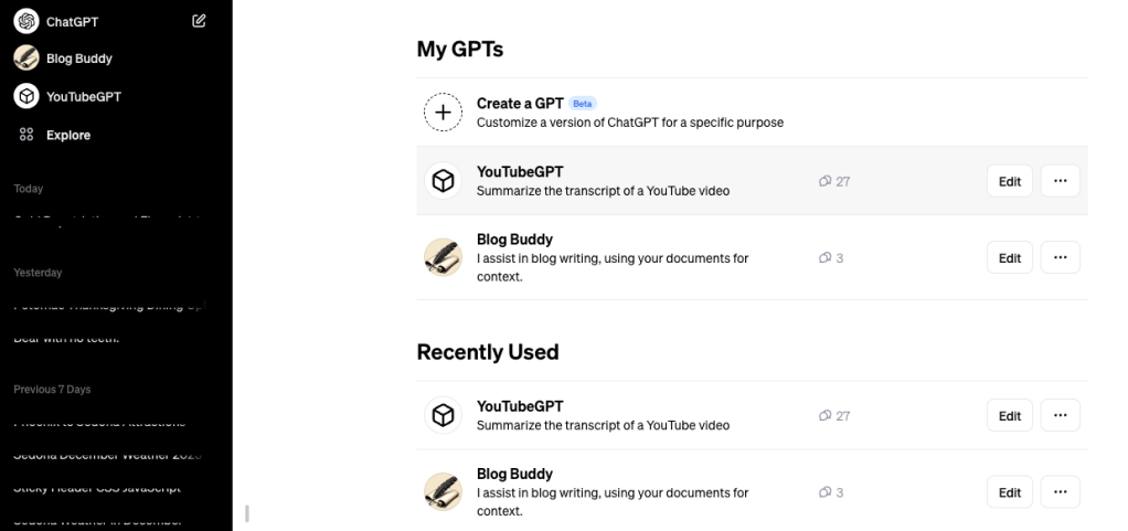 If you are a Plus member, when you log into your home page on ChatGPT, you will notice an “Explore” icon under the ChatGPT icon. Clicking it will direct you to OpenAI’s new “My GPTs” page, where you can browse some pre-built GPTs by OpanAI, or choose to create your own.
