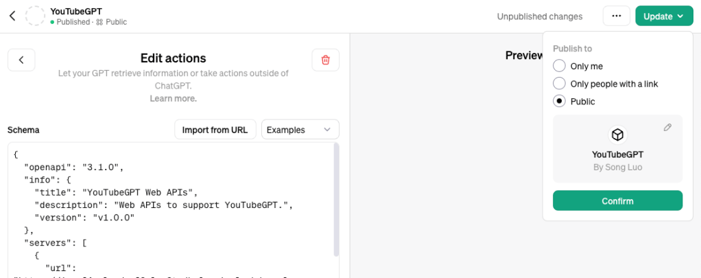 Update (11/19/2023): OpenAI recently enforced restrictions of using names which could potentially have trademarks, so I could not use YouTubeGPT for this work any more. The new name of this GPT is TubeSummarizer, and all the functions are the same as YouTubeGPT as described in this article. The Link to TubeSummarizer: https://chat.openai.com/g/g-FfwABJqAY-tubesummarizer
